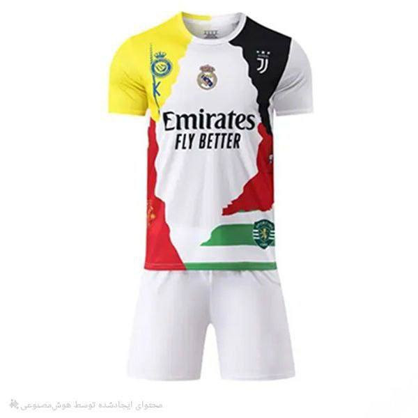 تیشرت و شلوارک رونالدو این کیتها بسته به تیم و مسابقاتی که رونالدو در آنها شرکت میکند، ممکن است رنگها و طرحهای متفاوتی داشته باشند. برای مثال، کیتهای او در تیم ملی پرتغال، رئال مادرید یا یوونتوس هر کدام طرح و رنگ خاص خود را دارند کیتهای رونالدو معمولاً دارای لوگوی تیم و اسپانسر مربوطه هستند و از جنس پارچههای ورزشی با قابلیت تنفس و راحتی بالا ساخته میشوند.