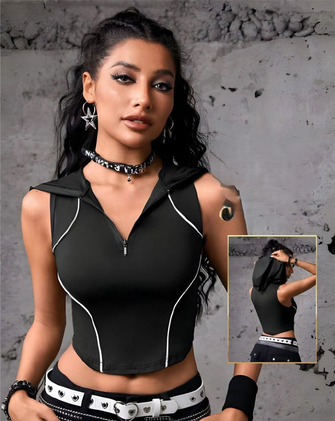 کراپ نیم زیپ خارجی کلاه دار